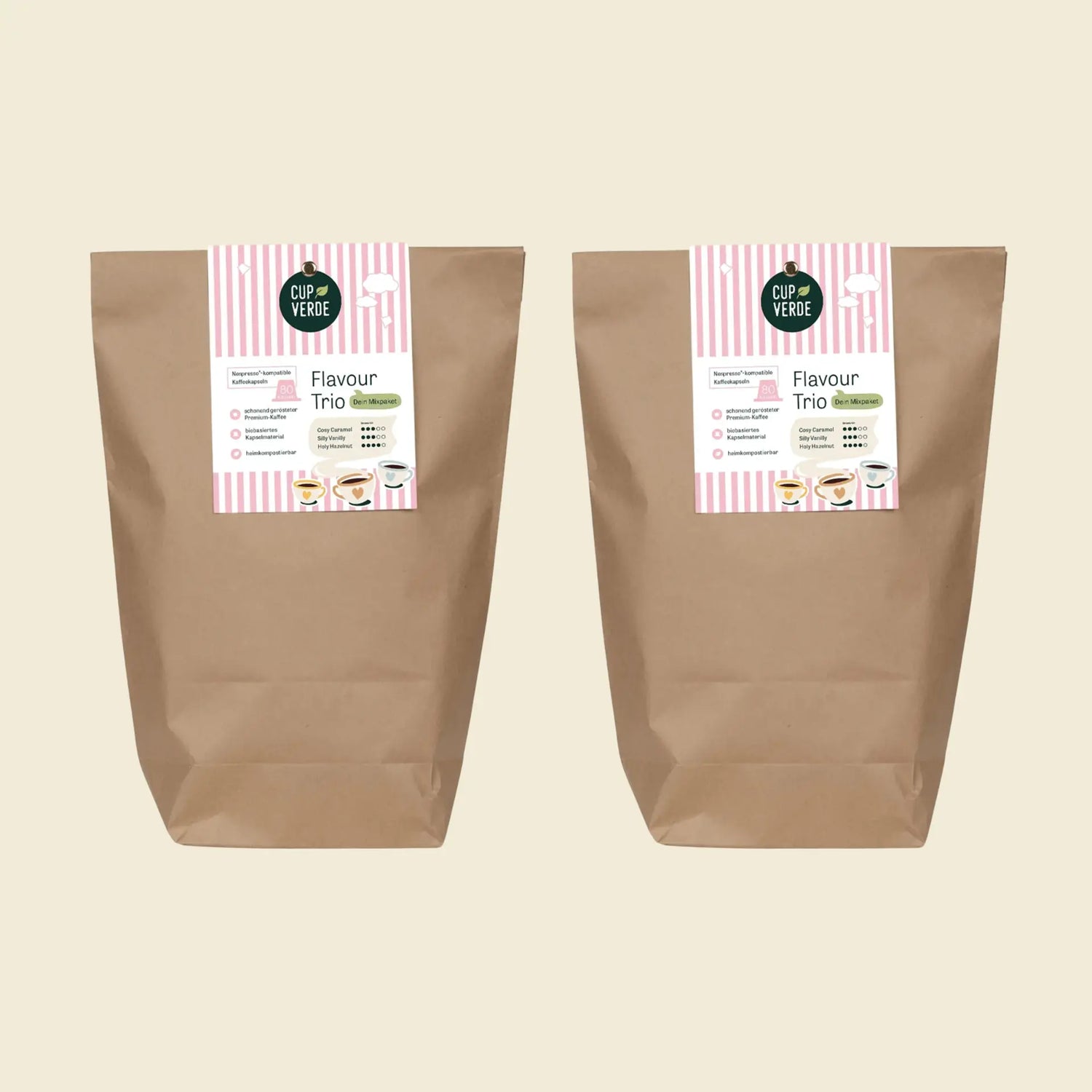 Unsere Flavour-Highlights in einem großen Paket: Holy Hazelnut, Cosy Caramel und Silly Vanilly sind das ultimative Trio für aufregende Genussmomente. Unsere feinen Aromen sind frei von tierischen Inhaltsstoffen und Allergenen. Bitte informiere Dich über die fachgerechte Entsorgung der Kapseln bei Deinem zuständigen Abfall- Entsorgungsunternehmen.