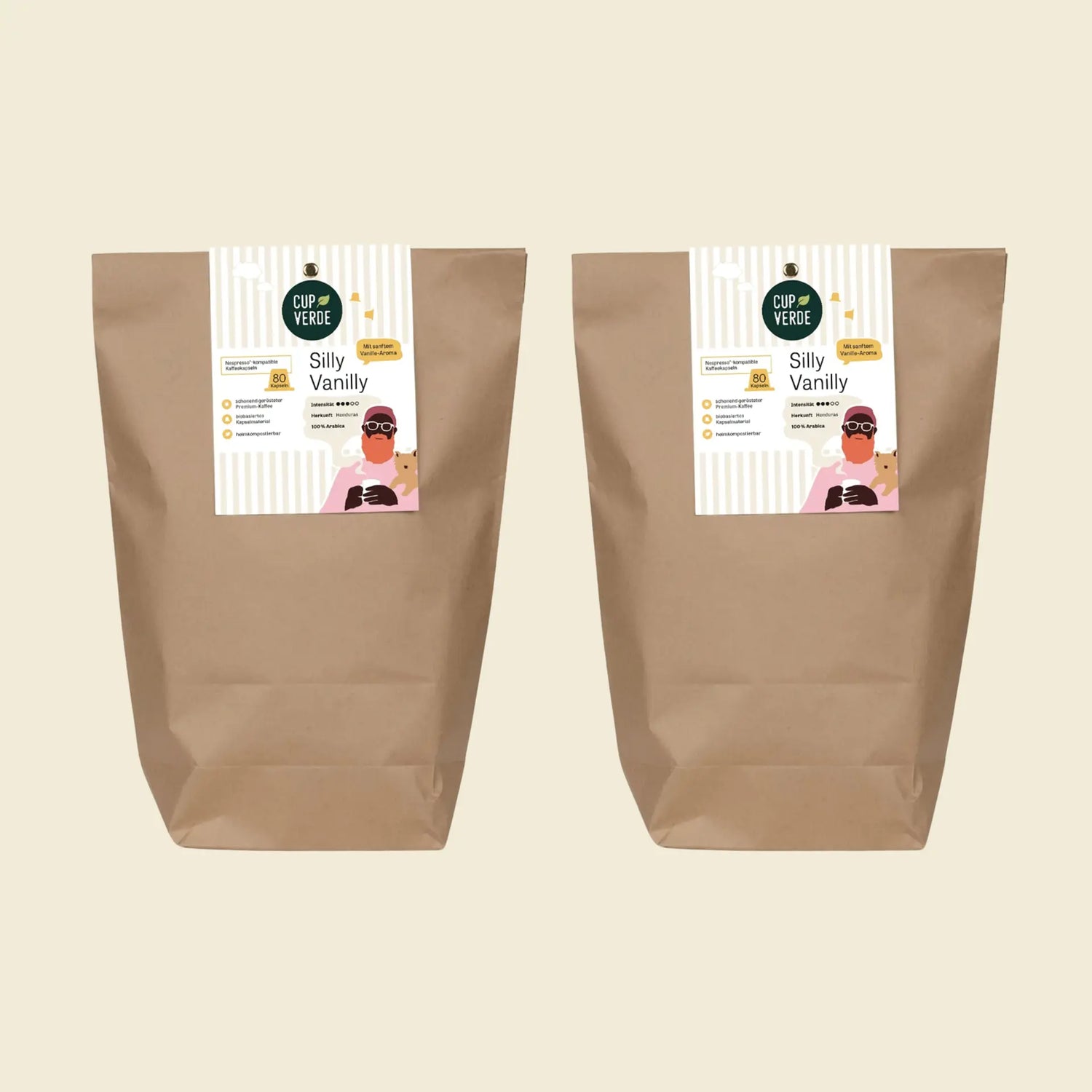Sanftes Vanille Aroma trifft auf Honduras Arabica Hochlandkaffee. Silly Vanilly bringt Abwechslung in die Tasse mit leichtem Vanille Aroma. Als schwarzer Kaffee oder auch als Latte ein Genuss. Benutze für den Latte die Espresso Taste. Unsere Aromen sind natürlich vegan.