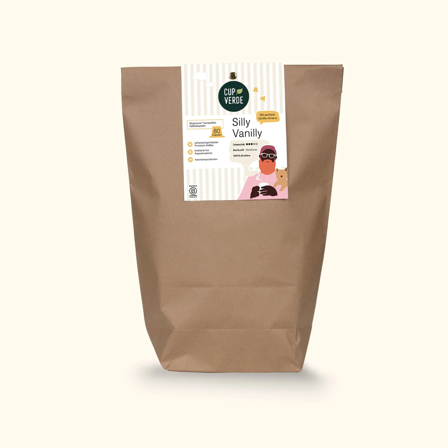 Silly Vanilly ist die köstliche Kombination von besten Arabica-Bohnen aus Honduras mit einem sanften Vanille-Aroma. Durch eine schonende Trommel-Röstung erreichen wir den unvergleichlich feinen Geschmack. Unsere Aromen sind frei von tierischen Inhaltsstoffen und Allergenen.