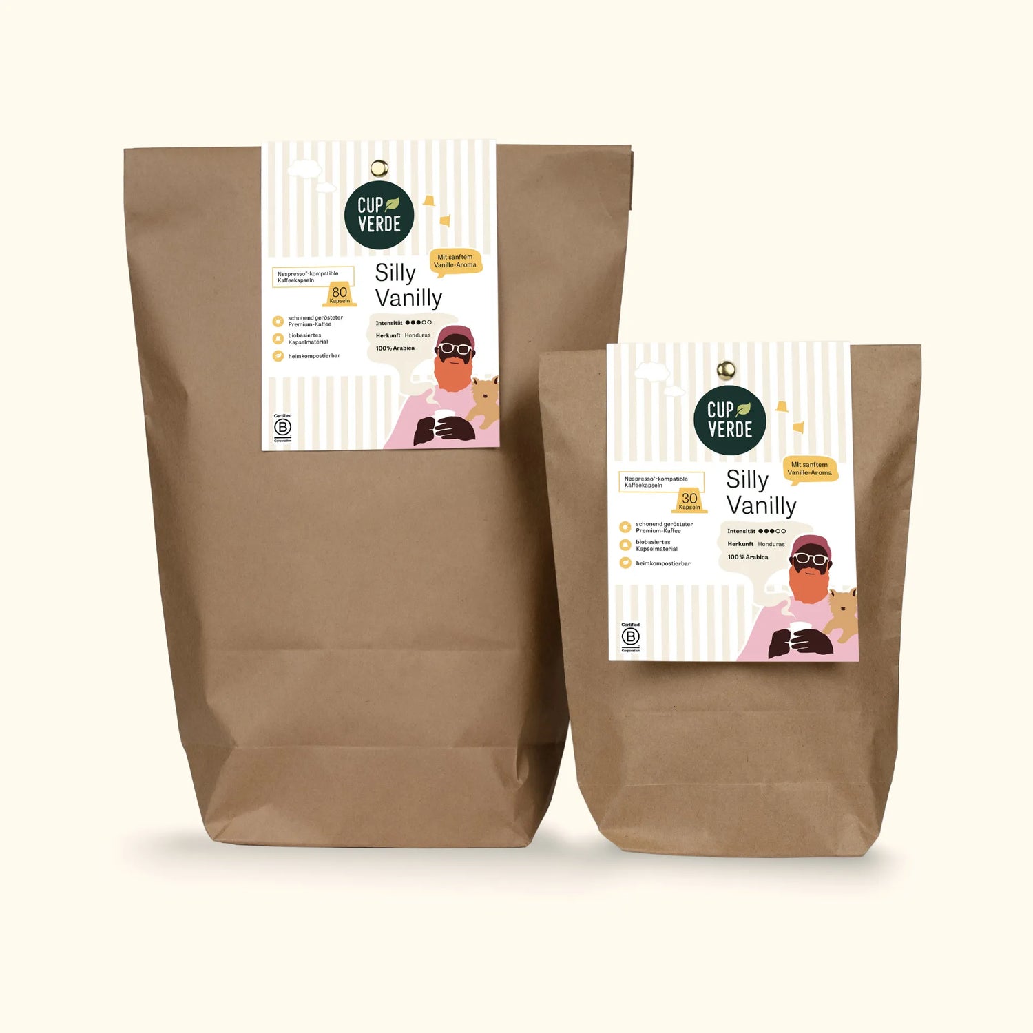 Sanftes Vanille Aroma trifft auf Honduras Arabica Hochlandkaffee. Silly Vanilly bringt Abwechslung in die Tasse mit leichtem Vanille Aroma. Als schwarzer Kaffee oder auch als Latte ein Genuss. Benutze für den Latte die Espresso Taste. Unsere Aromen sind natürlich vegan.